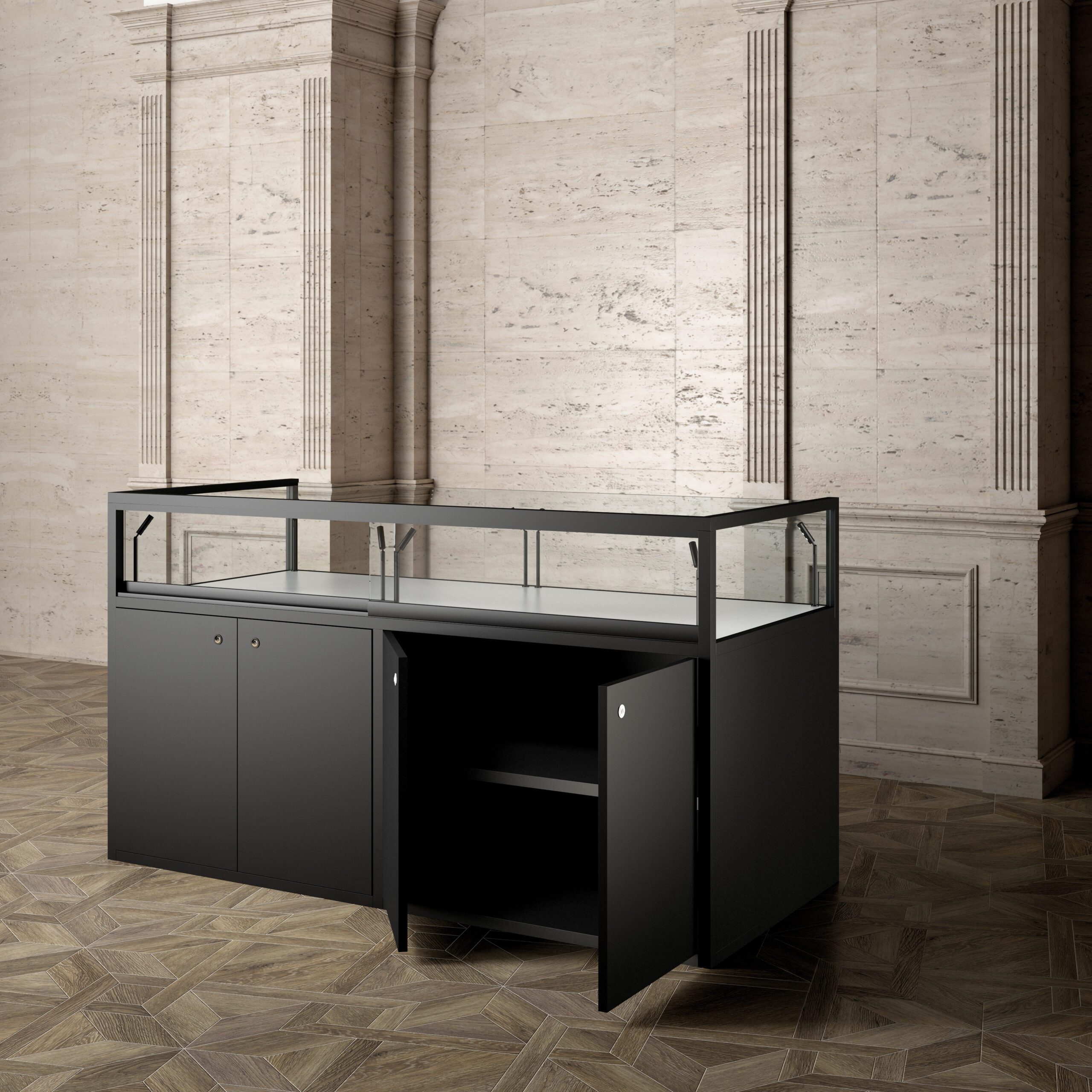 Vitrina za muzeje, metalna konstrukcija, 8 LED reflektora
